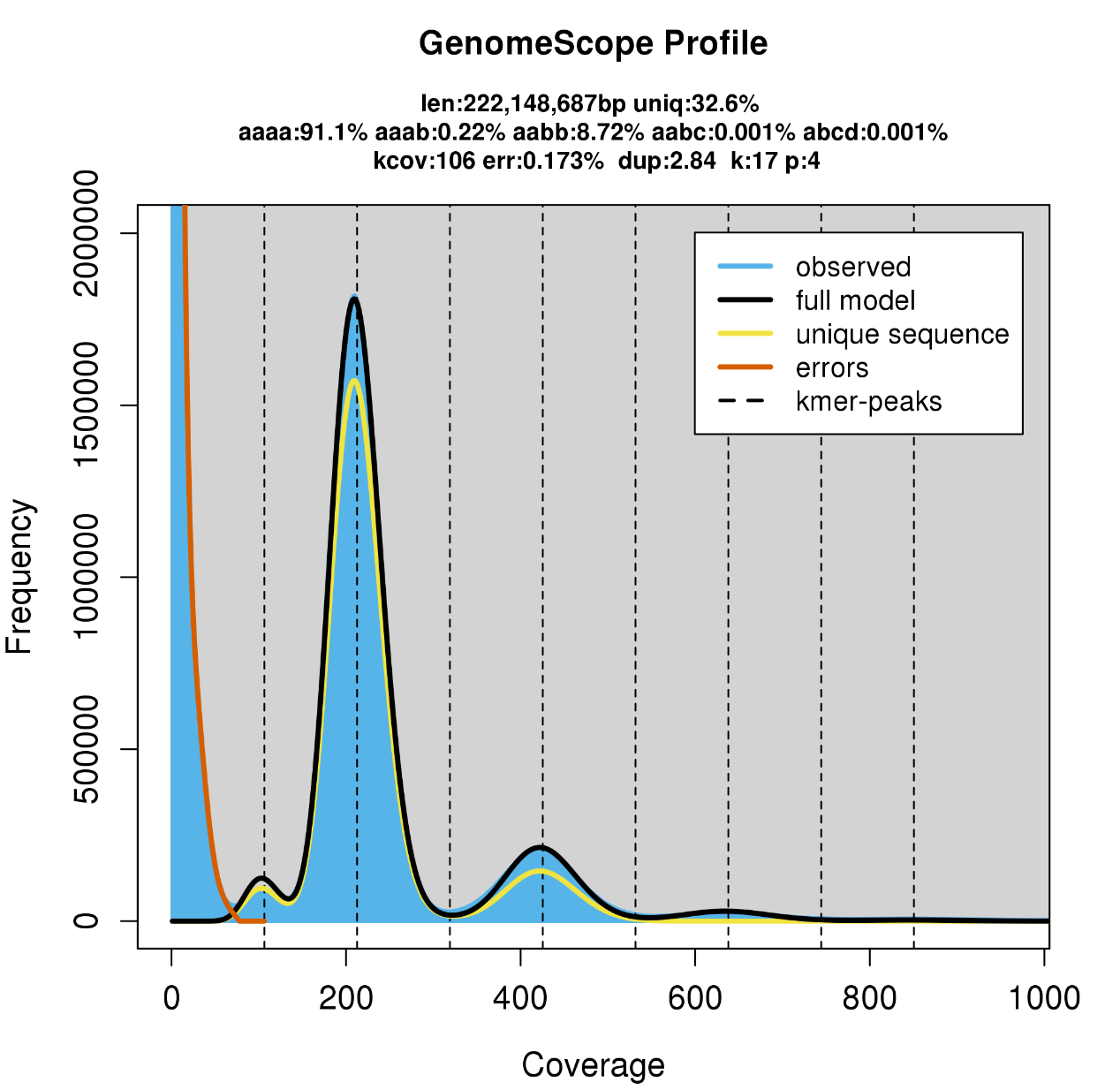 [1] ?Ranallo-Benavidez, T.R., Jaron, K.S. & Schatz, M.C. GenomeScope 2.0 and Smudgeplot for reference-free profiling of polyploid genomes. Nat Commun?11,?1432 (2020).