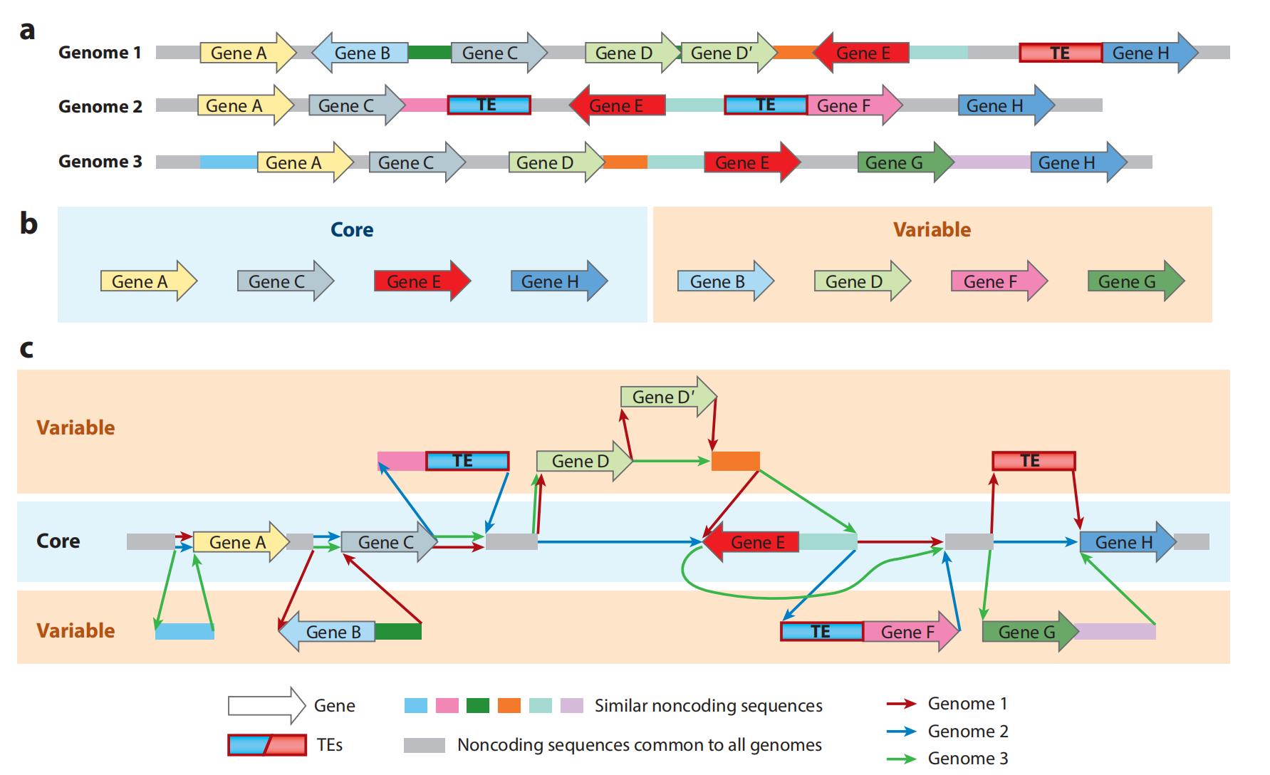 不同物種泛基因組研究對(duì)象可能不同:細(xì)菌基因組主要由編碼基因組成,非基因序列相對(duì)較少,因此細(xì)菌泛基因組研究更多的是針對(duì)蛋白編碼基因含量進(jìn)行。在動(dòng)植物上則因?yàn)榛蚪M上有大量的具有一定功能的非基因序列,因此真核生物中主要對(duì)序列和基因兩種形式進(jìn)行研究。與植物泛基因組不同,已發(fā)表的動(dòng)物泛基因組中更多是以序列為單位進(jìn)行。