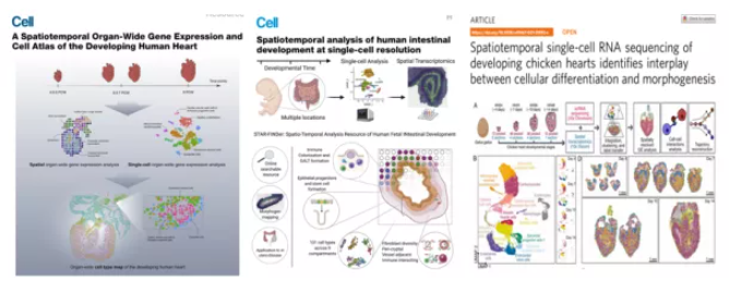 細胞在空間位置的異質(zhì)性,對于干細胞分化、組織發(fā)育和再生起著重要作用,空間轉(zhuǎn)錄組技術已經(jīng)在人的胚胎心臟、胚胎腸道和雞的胚胎心臟發(fā)育中得到應用,探明了胚胎發(fā)育的動態(tài)過程,空間組學發(fā)展可以清晰的描繪胚胎發(fā)育的藍圖。