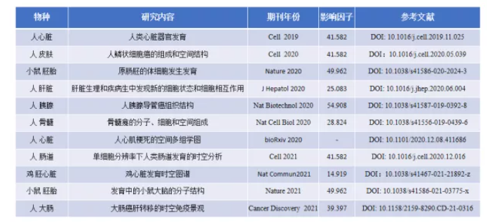 ? ? ? ? ? 空間轉(zhuǎn)錄組自從登上2020年Nature Methods 年度技術的封面以來,該技術一直都有重量級的文獻報道,并且刊登都是高分國際期刊雜志,頻繁登臨Cell、Science、Nature等高分期刊,據(jù)不完全統(tǒng)計利用10x visium 空間轉(zhuǎn)錄組技術已發(fā)表60+文獻,這些文獻平均影響因子15分左右,可見該技術在生物醫(yī)學領域代表目前科學技術應用,空間轉(zhuǎn)錄組從空間維度闡述轉(zhuǎn)錄組基因表達在不同組織區(qū)域的異質(zhì)性,甚至揭示單細胞分辨率空間上細胞異質(zhì)性,在生長發(fā)育(育種)、抗逆應激(生物脅迫和非生物脅迫)、免疫反應和致病機理、生物進化、輔助腫瘤精準治療、性別分化等幾個領域發(fā)揮著越來越重要的作用。