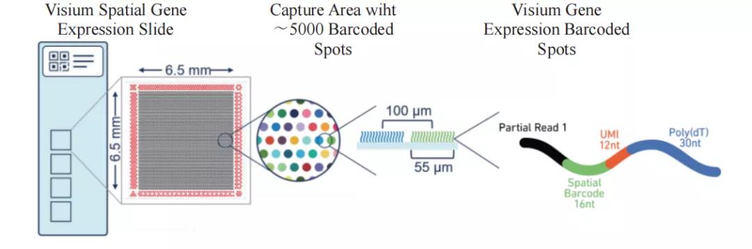 空間轉錄組(ST)是以高空間分辨率解析RNA-seq數(shù)據(jù)的技術,實現(xiàn)解析單個組織切片中的所有mRNA,從而能夠定位和區(qū)分功能基因在特定組織區(qū)域內的活躍表達信息,對于癌癥、免疫、腫瘤免疫相互作用,組織微環(huán)境,神經和發(fā)育等領域,有著令人期待的應用前景。