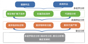 基于以上3篇文章我們可以發(fā)現(xiàn),首先可以選擇價格較低,周期較快的微生物多樣性測序,初步了解不同處理組樣本微生群落組成的變化,得到差異的物種,若需要進(jìn)一步在功能層面上進(jìn)行研究,可進(jìn)行宏基因組測序,探究功能的組成和變化規(guī)律,同時通過代謝組分析(非靶,靶向,廣靶等)得到代謝組的組成和差異,最后通過微生物+代謝聯(lián)合分析,全面的解析相關(guān)生物學(xué)問題,深入探究疾病發(fā)展機(jī)理,微生物與動植物互作機(jī)制等(如下圖所示)。
