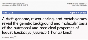 主要內(nèi)容:通過PacBio測序平臺完成733.32 Mb“大五星”枇杷基因組的構(gòu)建,并對52個枇杷品種(包括16個白肉變種和36個黃肉變種)進(jìn)行重測序分析,同時,使用UPLC-ESI-MS/M系統(tǒng)測定了的花、葉和根代謝組。通過GWAS分析鑒定了一些與枇杷的果肉顏色關(guān)聯(lián)的SNPs。