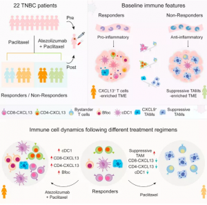 ● 突出了CXCL13+T細(xì)胞在有效應(yīng)對(duì)抗PD-L1療法方面的重要性,并表明通過紫杉醇療法減少這些細(xì)胞可能會(huì)損害伴隨阿特珠單抗 (Atezolizumab)進(jìn)行TNBC治療的臨床結(jié)果。