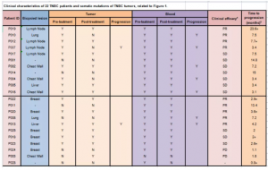 材料:22例TNBC患者(11例接受阿替利珠單抗聯(lián)合紫杉醇化療,11例接受紫杉醇單藥化療),一共78例樣本:治療前15例組織樣本、21例血液樣本;治療后13例組織樣本、20例血液樣本;治療進(jìn)展期2例組織,7例血液樣本。