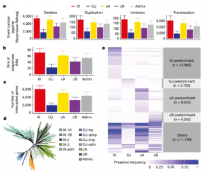 在用于GWAS的標記中,最初使用的是SSR標記,后來SNP標記成為常用標記。但是,研究人員逐漸意識到基于SNP標記的GWAS分析不足以解釋的群體中全部的遺傳變異。并且,隨著測序技術的發(fā)展,在人以及諸多動植物中發(fā)現(xiàn)了大規(guī)模的SVs [包括拷貝數(shù)變異(CNV)/存在缺失變異(PAV)和易位/倒置(translocations/inversions)]與疾病、馴化及重要農(nóng)藝性狀有關。本期推文,我們一起來看一下SVs在動植物群體研究中的進展。