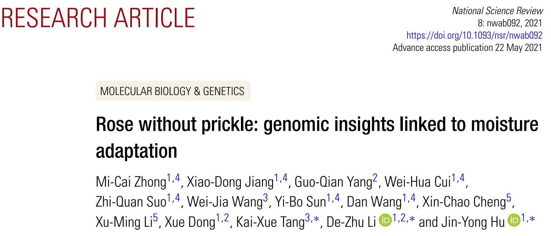 以中國(guó)古老月季‘無(wú)刺光葉薔薇’(R. wichuraiana‘Basye’s Thornless’,BT)和‘月月粉’(R. chinensis‘Old Blush’,OB)及其雜交F1和回交BC1F1世代遺傳群體等為試材,團(tuán)隊(duì)構(gòu)建了二倍體BT染色體水平高量參考基因組。該基因組大小約為530.6 Mb;遺傳圖比對(duì)、BUSCO分析、二代reads回貼、與單倍體OB基因組比較、單堿基水平正確率分析和LTR組裝指數(shù)(LAI=20.03)等方法均確認(rèn)了BT基因組的高準(zhǔn)確性。綜合利用比較基因組學(xué)、分子遺傳學(xué)和演化生物學(xué)等方法手段解析了月季皮刺遺傳調(diào)控機(jī)制,系統(tǒng)研究了無(wú)刺BT和有刺O(píng)B間的重要遺傳分化,探究了月季皮刺遺傳調(diào)控機(jī)制,揭示了基因表達(dá)變異可能是皮刺表型分化的基礎(chǔ),提出了皮刺發(fā)育早期的生理學(xué)功能假設(shè),構(gòu)建了重要遺傳和基因組資源。