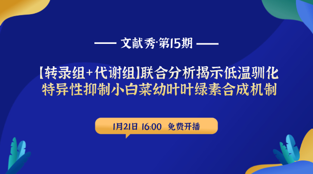 2021年4月10日,《BMC plant biology》在線發(fā)表了名為“Cold acclimation can specifically inhibit chlorophyll biosynthesis in young leaves of Pakchoi”研究文章,該研究通過轉(zhuǎn)錄組學(xué)和非靶向代謝組學(xué)聯(lián)合分析,選擇了候選基因及代謝物,并對其進行功能驗證,為解析不結(jié)球白菜“Y-05”葉色變化的機制提供了一定的依據(jù)。