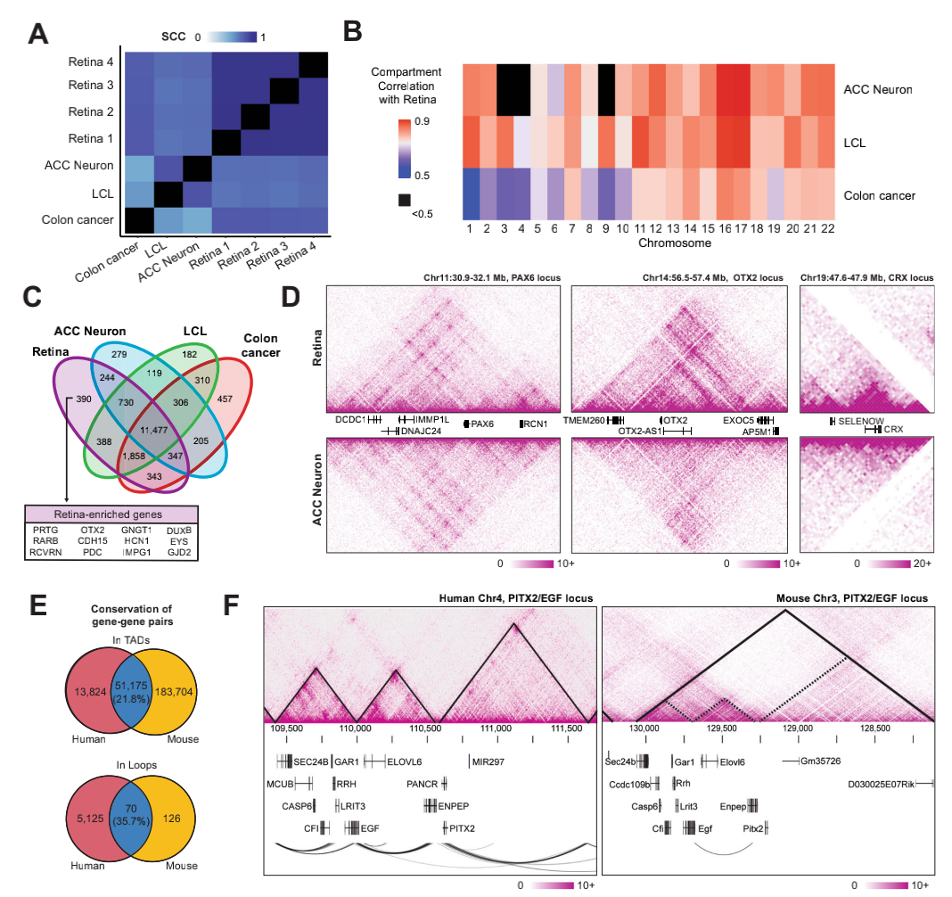 2、人視網(wǎng)膜染色質(zhì)拓撲結(jié)構(gòu)具有組織特異性和物種保守性