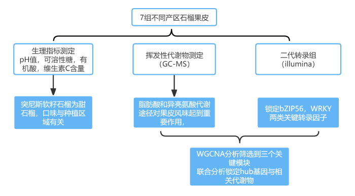 多組學研究在植物領(lǐng)域中的應(yīng)用案例2、多組學聯(lián)合解析突尼斯軟籽石榴揮發(fā)性風味物質(zhì)生物合成機制