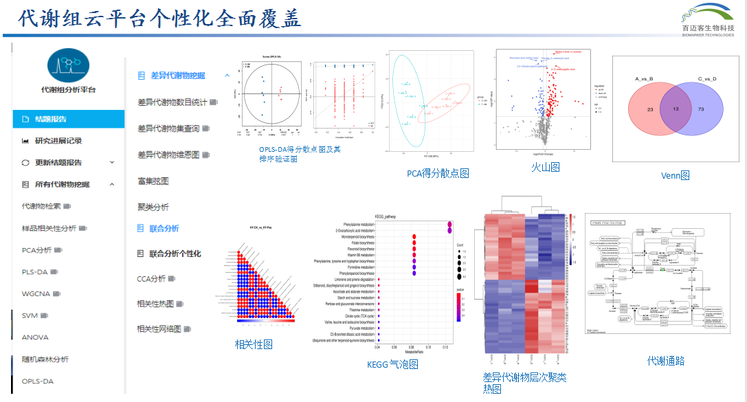 百邁客云平臺依托于多年項目分析經驗,優(yōu)化云服務體系,功能全面升級,搭建了覆蓋數據處理、圖片美化、結果解讀、應用介紹的個性化分析平臺,不需要和公司反反復復的確認,也不需要幾周的長時間等待,通過網頁就可以自主完成轉錄組代謝組聯合分析數據的挖掘,把時間握在自己手中。個性化分析功能+圖片交互,所有需求一網打盡!5分鐘急速周期,分析結果觸手可得!更有多種聯合分析等你來拿,轉錄,蛋白,代謝,微生物任意搭配,兩兩,三三多種組合任你選!幾步操作輕松搞定,無限次免費分析!