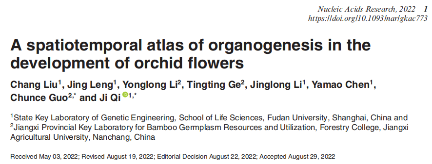 研究?jī)?nèi)容:利用10x Visium空間轉(zhuǎn)錄組學(xué)數(shù)據(jù)分析了蝴蝶蘭花器官早期發(fā)育過(guò)程中基因表達(dá)的動(dòng)態(tài)變化。通過(guò)對(duì)時(shí)空表達(dá)分布的比較,確定了在特定組織/階段優(yōu)先表達(dá)的數(shù)千個(gè)基因,包括MADS-box基因和許多其他潛在下游基因,形成了花器官初始化、身份決定和形態(tài)建成的模型。對(duì)蘭花開(kāi)花發(fā)育過(guò)程進(jìn)行了系統(tǒng)的研究,為進(jìn)一步研究蘭花開(kāi)花過(guò)程中復(fù)雜而重要的基因調(diào)控網(wǎng)絡(luò)提供了寶貴的資源。