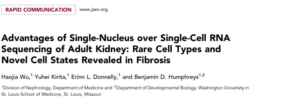 [3]Advantages of Single-Nucleus over Single-Cell RNA Sequencing of Adult Kidney: Rare Cell Types and Novel Cell States Revealed in Fibrosis.Haojia Wu, Yuhei Kirita, Erinn L. Donnelly,et al.J Am Soc Nephrol,2019(30): 23-32