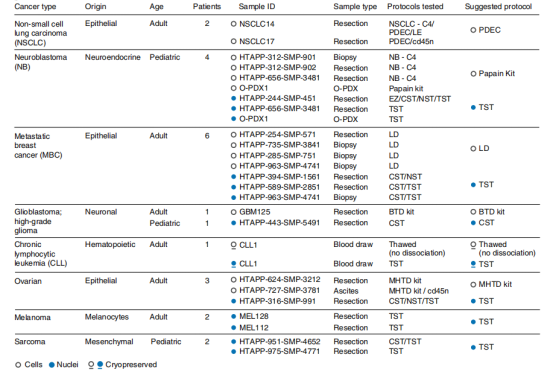 圖1-2 不同腫瘤組織樣品信息和細(xì)胞/細(xì)胞核分離方式