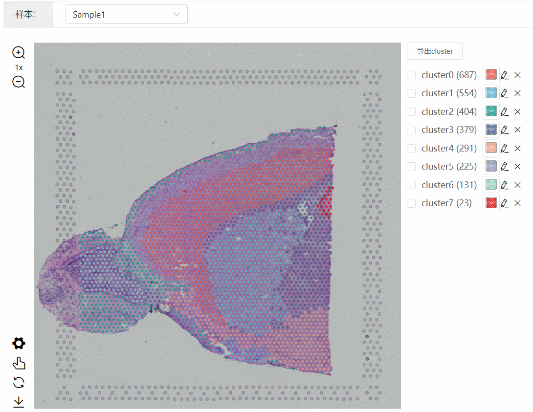 空間轉(zhuǎn)錄組的客戶,可根據(jù)組織聚類圖,結(jié)合影像學和研究目的,自主選擇感興趣區(qū)域(ROI,region of interesting),查看區(qū)域之間的基因表達情況,從而獲得更典型的對比結(jié)果。