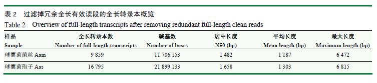 球囊菌菌株由福建農(nóng)林大學(xué)動物科學(xué)學(xué)院(蜂學(xué)學(xué)院)蜜蜂保護(hù)實(shí)驗(yàn)室分離、純化和保存。純化得到的純凈菌絲樣品和孢子樣品經(jīng)液氮速凍后迅速轉(zhuǎn)移到-80℃超低溫冰箱保存?zhèn)溆?。利用納米孔長讀段測序技術(shù)對球囊菌的純化菌絲(Aam)和純化孢子(Aas)分別進(jìn)行測序,將高質(zhì)量的三代測序數(shù)據(jù)混合后用于構(gòu)建全長轉(zhuǎn)錄組,并通過比對主流數(shù)據(jù)庫進(jìn)行功能注釋,同時對球囊菌的長鏈非編碼RNA(longnon-codingRNA,lncRNA)進(jìn)行鑒定和分析。
