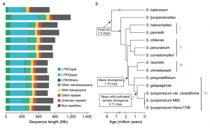 圖1. 野生和栽培番茄的基因組構(gòu)成和系統(tǒng)發(fā)育關系