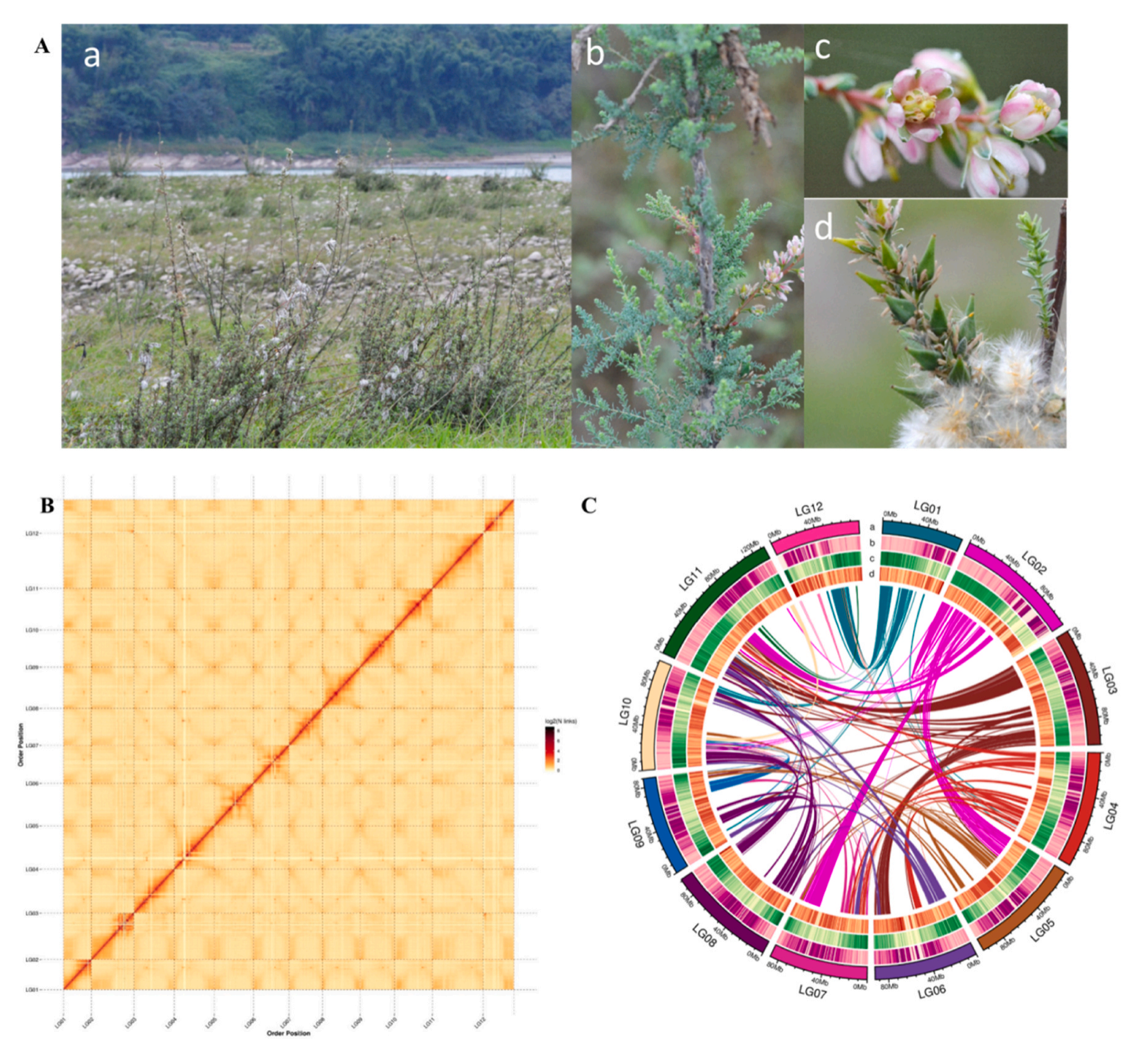 近日,由西南大學、重慶市林業(yè)科學研究院、重慶城市管理職業(yè)學院團隊合作完成的項目成果《?Chromosome-scale?genome?assembly?clarifies?the?mechanism?of?flooding?tolerance?and?evolutionary?history?of?Myricaria?laxiflora》在《科學引文索引》(SCI)一區(qū)TOP期刊上“Industrial?Crops?&?Products”發(fā)表。該研究報道了水柏枝屬染色體水平基因組,并從形態(tài)學、生理學、比較基因組等多個角度揭示了疏花水柏枝在淹沒的環(huán)境適應(yīng)性和遺傳機制,為檉柳科物種種質(zhì)資源的保護和資源的開發(fā)利用提供了指導。