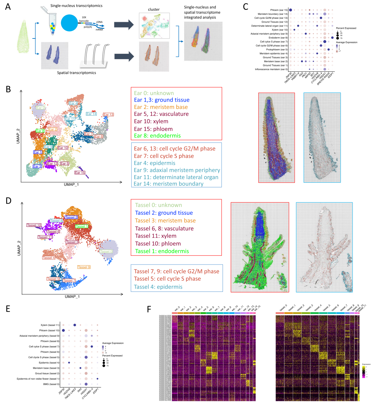 單細胞核轉錄組&空間轉錄組:玉米雌穗、雄穗、高粱花序組織