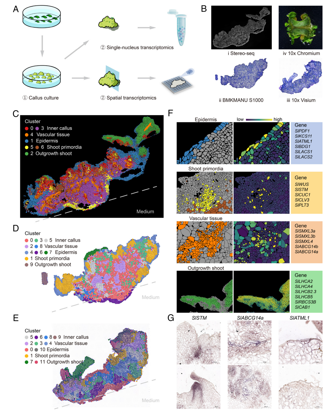 中文題目:空間轉錄組測序揭示番茄愈傷組織芽再生的分子機制
