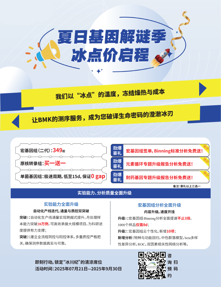 作者: Biomarker 發(fā)布于 2025年7月22日 分類: 市場(chǎng)活動(dòng), 微生物組測(cè)序 2025-07-222025-07-22http://www.greeneandson.com/wp-content/uploads/2020/04/90-90logo.png百邁客生物200px200px 1 最近文章重磅!百邁客生物震撼發(fā)布植物廣靶定量代謝組學(xué)技術(shù)!解鎖植物代謝精準(zhǔn)定量新路徑!9月17日,植物廣靶定量代謝組學(xué)發(fā)布會(huì)邀您共探新方向北京市科委、中關(guān)村管委會(huì)一行蒞臨百邁客生物調(diào)研指導(dǎo),助力企業(yè)發(fā)展
