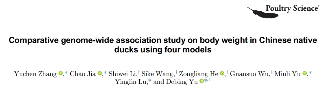 鴨子為人類消費提供肉、蛋、羽毛等產(chǎn)品,中國是世界上最大的鴨肉消費國。金陵白鴨做為我國優(yōu)質(zhì)的選育品種,具有優(yōu)良的生長速度和肉質(zhì)品質(zhì)。從孵化到上市的整個時期,鴨子的體重逐漸增加,這一過程由復(fù)雜的生理和生化機(jī)制調(diào)控,器官和骨骼的發(fā)育是體重增加的關(guān)鍵因素,全基因組關(guān)聯(lián)分析(GWAS)是許多牲畜和家禽物種研究生長和發(fā)育的遺傳機(jī)制的常用方法,然而,現(xiàn)有的一些關(guān)于鴨生長發(fā)育性狀的GWAS研究測序深度較低,發(fā)現(xiàn)的候選基因很少。