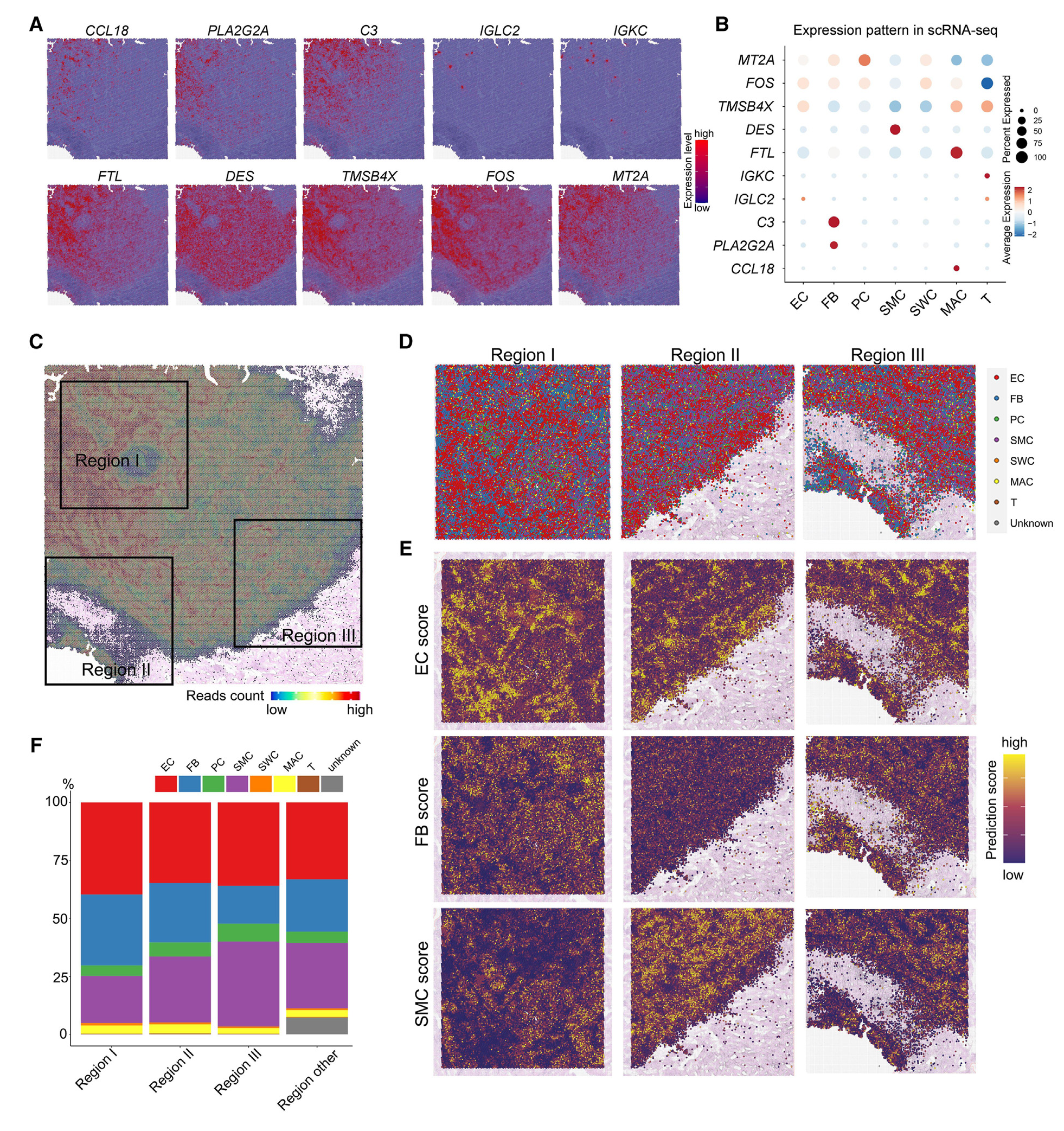 圖6-CC中不同成纖維細(xì)胞亞群表現(xiàn)出不同的空間分布特征