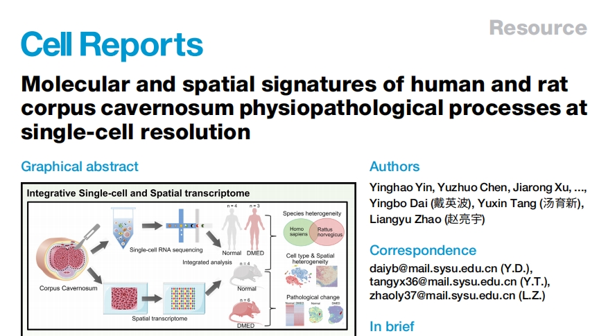 Yin et al, Molecular and spatial signatures of human and rat corpus cavernosum physiopathological processes at single-cell resolution. Cell Rep. 2024 Sep 24;43(9):114760. doi: 10.1016/j.celrep.2024.114760. Epub 2024 Sep 18.