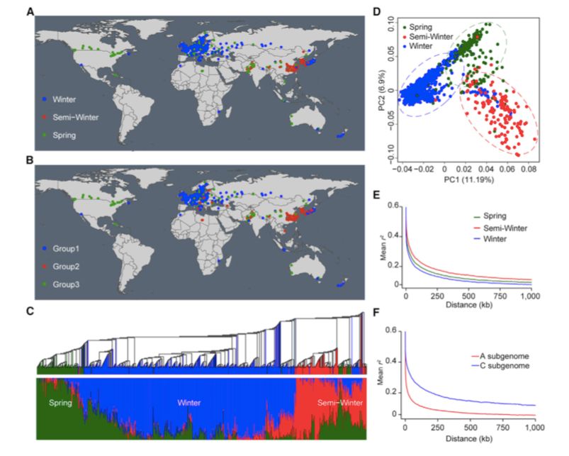 材料及來(lái)源:來(lái)自39個(gè)國(guó)家的991個(gè)甘藍(lán)型油菜種質(zhì)資源,包括658個(gè)冬季類(lèi)型、145個(gè)半冬季類(lèi)型和188個(gè)春季類(lèi)型。