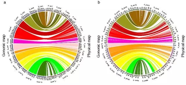 作者之前利用SSR標(biāo)記做的遺傳圖譜和利用SLAF-seq構(gòu)建的遺傳圖譜進(jìn)行了比較。兩張遺傳圖譜均構(gòu)建了珍珠蚌19條連鎖群,但是標(biāo)記數(shù),圖距,分辨率均不同。SSR標(biāo)記包含了506個(gè)標(biāo)記,總圖距1,922.3cM,平均圖距3,99cM,大的Gap數(shù)較多,而基于SLAF-seq的圖譜在以上指標(biāo)上均顯著優(yōu)于SSR標(biāo)記圖譜。