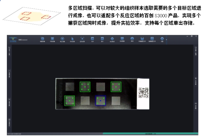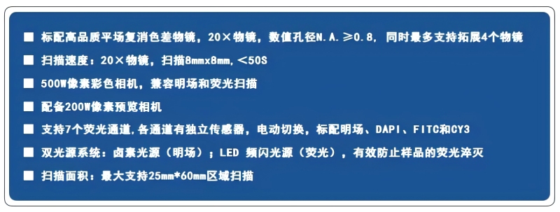 50S內(nèi)可完成8mm*8mm 20X掃描,支持掃描25mm*60mm,原片明場(chǎng)及原片熒光成像