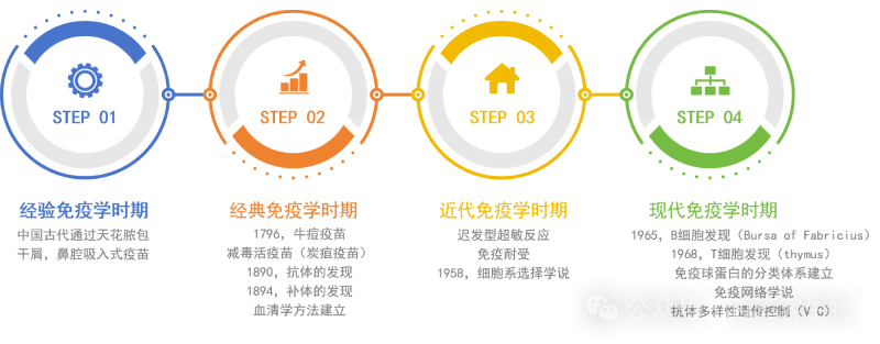這是最早關(guān)于人類免疫學(xué)應(yīng)用的記錄。公元前?400?年,中國(guó)可能已有人痘苗接種預(yù)防天花的方法,到?16?世紀(jì)明朝隆慶年間,人痘接種法得到重大改進(jìn)并廣泛應(yīng)用,17?世紀(jì)傳入俄國(guó)、朝鮮、日本、土耳其和英國(guó)等國(guó)家,至18世紀(jì)末結(jié)束經(jīng)驗(yàn)免疫學(xué)時(shí)期,隨后免疫學(xué)又經(jīng)歷了經(jīng)典免疫學(xué)時(shí)期,近代免疫學(xué)時(shí)期,直到1965年/1968年?B細(xì)胞/T細(xì)胞的發(fā)現(xiàn)開啟了現(xiàn)代免疫學(xué)時(shí)期。