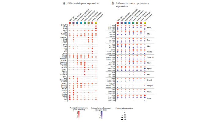 10×單細(xì)胞全長(zhǎng)轉(zhuǎn)錄組測(cè)序利用ONT長(zhǎng)讀長(zhǎng)實(shí)時(shí)測(cè)序技術(shù)結(jié)合10X技術(shù)可以直接讀取反轉(zhuǎn)錄的全長(zhǎng)cDNA,并進(jìn)行快速分析。這樣能夠有效的獲取高質(zhì)量的單個(gè)RNA分子的全部序列,準(zhǔn)確辨別二代測(cè)序無(wú)法識(shí)別的同源異構(gòu)體 (isoform)、同源基因、超家族基因或等位基因表達(dá)的轉(zhuǎn)錄本。