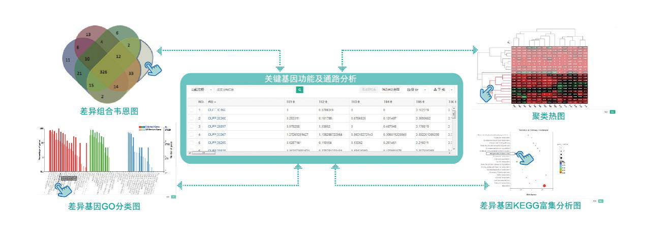 答:可從所有基因,差異基因及SNP三個(gè)方面進(jìn)行數(shù)據(jù)挖掘。所有基因可通過功能注釋信息,基因ID,基因名稱,序列信息幾個(gè)方面進(jìn)行挖掘,同時(shí)還可以做表達(dá)基因集維恩圖,WGCNA等分析。差異基因則可通過維恩圖分析不同處理批次幾個(gè)差異組合共同的差異基因;通常表達(dá)量變化趨勢一致的基因,可能會(huì)有相似的功能,故可通過基因共表達(dá)趨勢分析來進(jìn)行差異基因的深入挖掘。SNP則可通過PCA分析,系統(tǒng)進(jìn)化樹,樣品間差異SNP篩選及目標(biāo)區(qū)域SNP查詢等進(jìn)行挖掘。以上這些分析均可在我公司云平臺(tái)免費(fèi)完成。