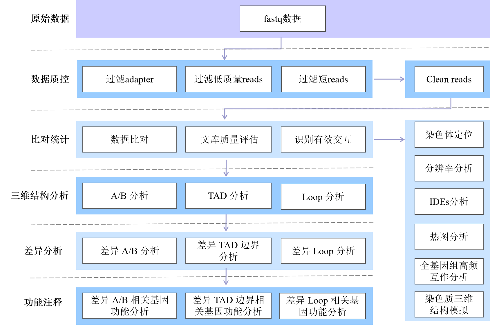 建議和其他組學聯合開展,一般最少和RNA-seq聯合,其他如甲基化測序、研究轉錄因子結合以及組蛋白修飾的chip-seq、可以確實增強子啟動子peak的染色質可及性測序ATAC-seq以及檢測突變的全基因組重測序等,都可以聯合開展,從各個層面說明染色質構象改變的結果或原因,豐富充實文章內容。當然,如果您已經有其他組學數據,也可以提供給我們進行聯合分析。