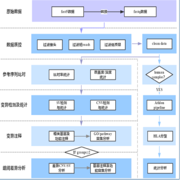 實(shí)驗(yàn)流程按照 Oxford Nanopore Technologies(ONT) 公司提供的標(biāo)準(zhǔn) protocol 執(zhí)行,包括樣品質(zhì)量檢測(cè)、文庫(kù)構(gòu)建、文庫(kù)質(zhì)量檢測(cè)和文庫(kù)測(cè)序等流程。