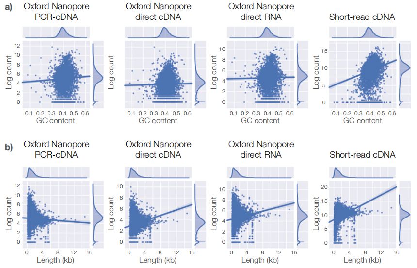 綜上,nanopore全長(zhǎng)轉(zhuǎn)錄組測(cè)序受基因的GC含量和長(zhǎng)度偏好更小。