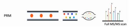 PRM(平行反應(yīng)監(jiān)測,parallel reaction monitoring)是一張基于高分辨、高精度質(zhì)譜的靶向蛋白質(zhì)組學(xué)技術(shù),能夠?qū)δ繕?biāo)蛋白質(zhì)、目標(biāo)肽段進(jìn)行選擇性檢測,從而實現(xiàn)目標(biāo)蛋白質(zhì)/肽段的相對/絕對定量,可以用于驗證定量蛋白質(zhì)組學(xué)結(jié)果。與經(jīng)典的Western blot、ELISA技術(shù)相比,擺脫了抗體限制,應(yīng)用范圍更加廣泛。