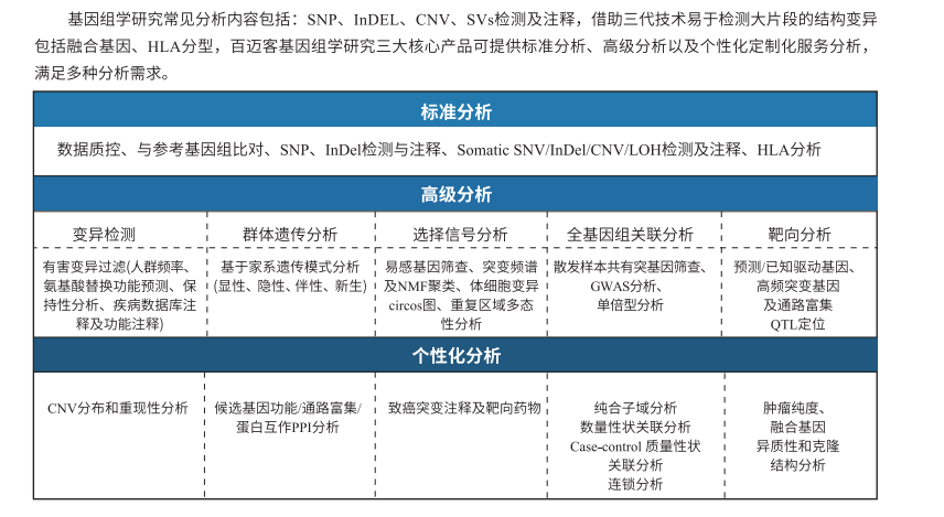 遺傳病致病機(jī)制、疾病發(fā)生發(fā)展、腫瘤分子分型、疾病風(fēng)險(xiǎn)篩查。