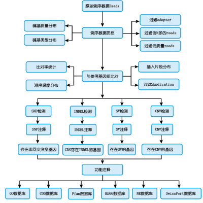 全基因組重測(cè)序(whole genome sequencing,WGS)對(duì)全基因組進(jìn)行測(cè)序掃描,能在全基因組范圍之內(nèi)解讀所有常見(jiàn)和稀有變異信息,全面檢測(cè)單核苷酸多態(tài)位點(diǎn)(Single Nucleotide Polymorphisms, SNP)、插入缺失位點(diǎn)(Insertion Deletion, InDel)、結(jié)構(gòu)變異(Structure Variation,SV)以及拷貝數(shù)變異(Copy Number Variation, CNV)。
